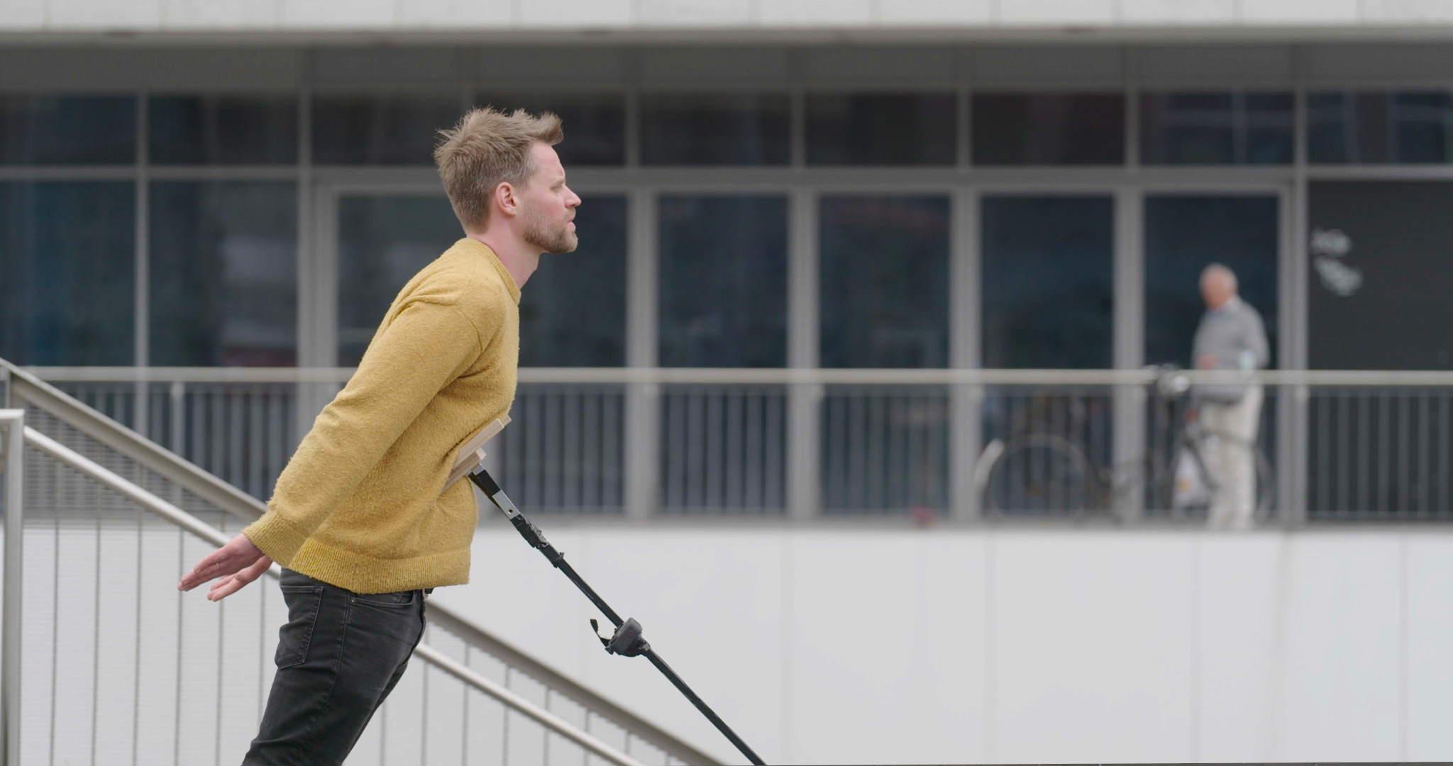 Simon Pfeffel gehört zur Riege neuer Künstler*innen, die den Kunstbegriff sehr weit fassen. Von der Graffiti-Kunst kommend, arbeitet er heute als Performance-Künstler. Seine Medien sind der öffentliche Raum, zufällige Passanten jenseits des klassischen Kunstpublikums und sein eigener Körper. Seine Hilfsmittel sind Empathie, Irritation, Vertrauen, Ausdauer und rudimentäre, funktionale Skulpturen. Ästhetik ist zweitrangig.